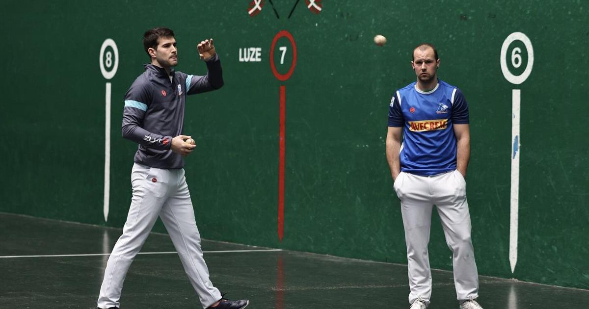 "Hemos quedado contentos con cinco de las seis pelotas, excepto una que han sacado ellos, que tenía menos salida de frontis y bota mucho por abajo", califica el pegador de Etxarren, quien determina que es "más oscura que el resto".
