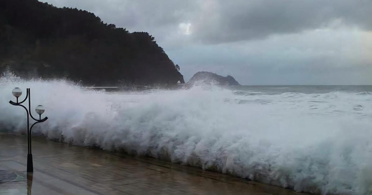 Ola entrando al Malecón de Zarautz durante una fuerte marejada. / Udala