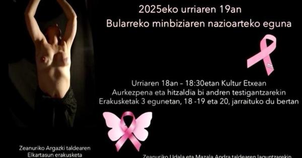 La exposición se inaugura a las 18.30 de este sábado en la Kultur Etxea de Zeanuri. El acto se completará con la charla-coloquio 'Concienciación y visibilidad del cáncer de mama' que contará con la participación y el testimonio "de dos mujeres que han pasado por este proceso y en la que se hablará también sobre las diferentes formas de hacer frente a esta enfermedad".
