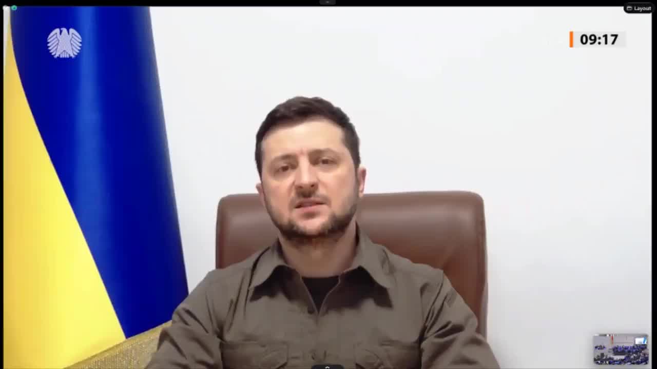 Los parlamentarios del Bundestag se pusieron pie antes del discurso y saludaron con aplausos a Zelenski, que apareció en una pantalla de vídeo, al igual que lo hizo anteriormente en el Congreso de Estados Unidos y en el Parlamento Europeo.
