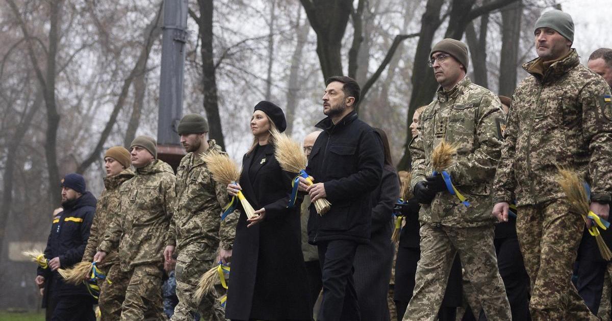 Zelenski junto a su mujer, Olena Zelenska, durante una ofrenda a las víctimas del Holodomor el pasado 22 de noviembre.