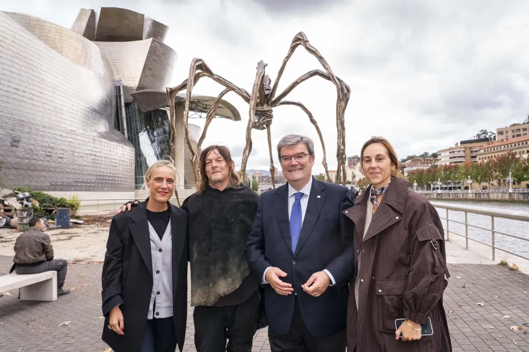 Norman Reedus junto al alcalde de Bilbao, la directora del Guggenheim, Miren Arzallus y la concejal de Desarrollo Económico Kontxi Claver