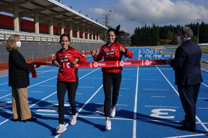 A esta visita ha asistido también el presidente del club Bilbao Atletismo Santutxu y su directora técnica, Alex Carnero y Amaia Piedra, respectivamente, así como dos atletas del club, Elena Loyo y Majida Maayouf, quienes han realizado una exhibición deportiva en esta pista, donde habitualmente entrenan junto a las y los atletas de las diferentes categorías del club.