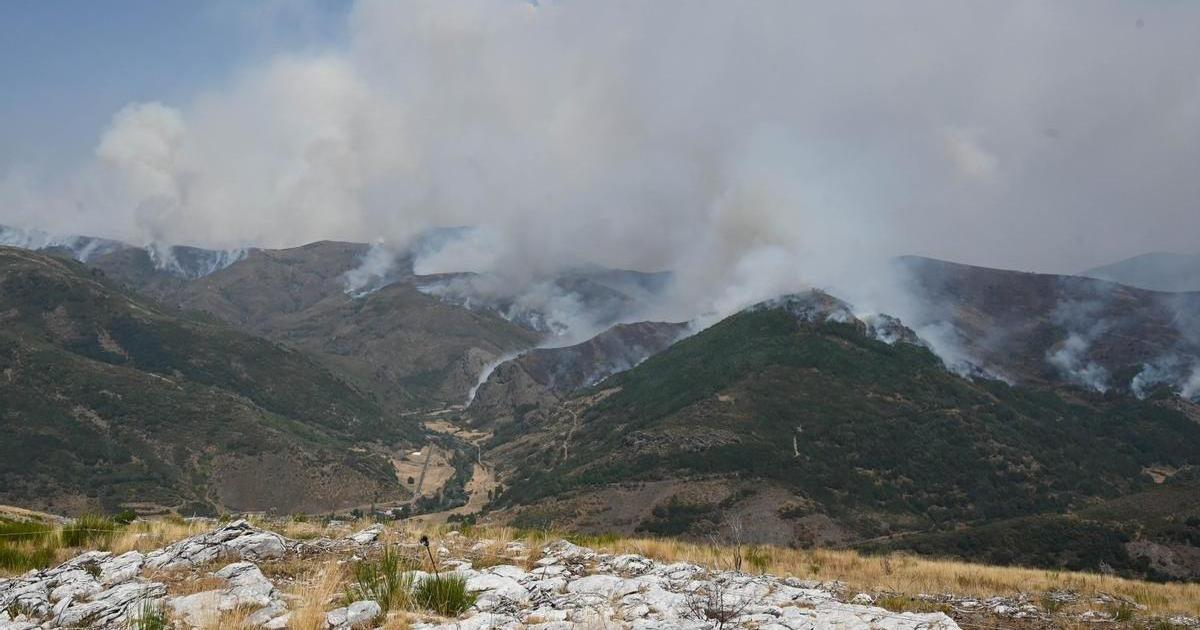 Vista del incendio de Barniedo (León), que afecta a los Picos de Europa.